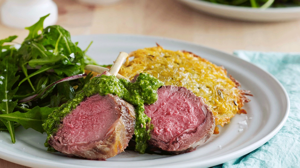Lamb Cutlets with Potato Rosti & Fresh Herb Pistou